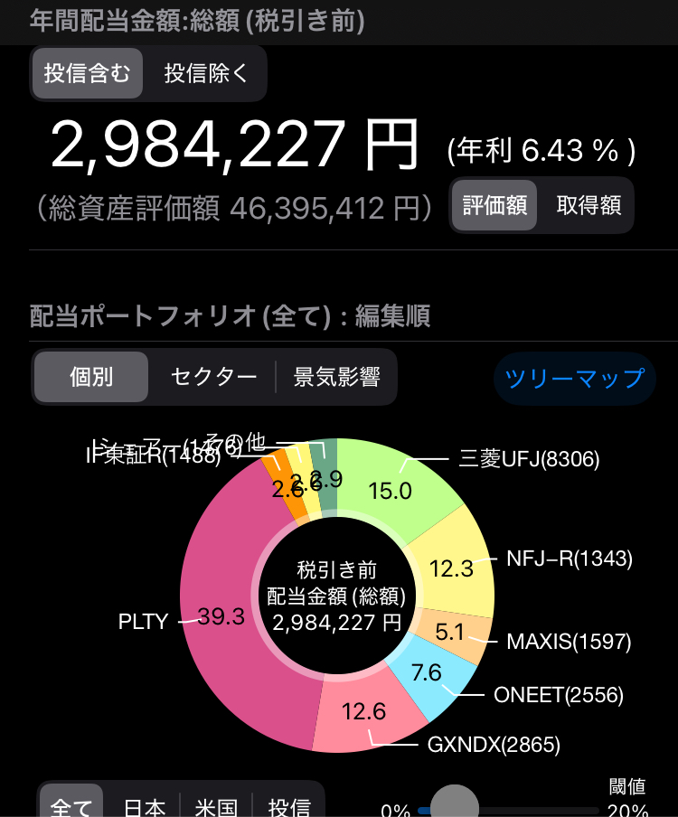 着実に配当収入が伸びていますね。しかし、MSTYは損切してPLTYに切り替えたので来月からは減ってしまうと思います。
