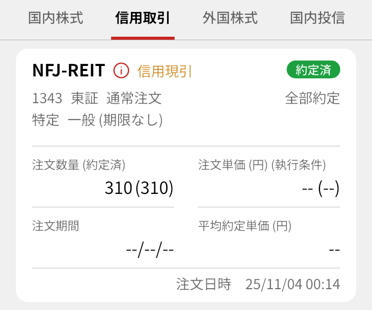 私は2024年末から2025年前半のラインはJ-REITは不当に売られており割安だと判断していた。しかし現金がない私は一般信用で購入するしか手がなかった。
